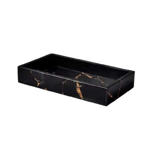 - Obsidian Tray: A black obsidian tray serves as a functional and decorative element, providing a sleek surface for organizing and displaying various bathroom essentials such as toiletries, perfumes, or candles.