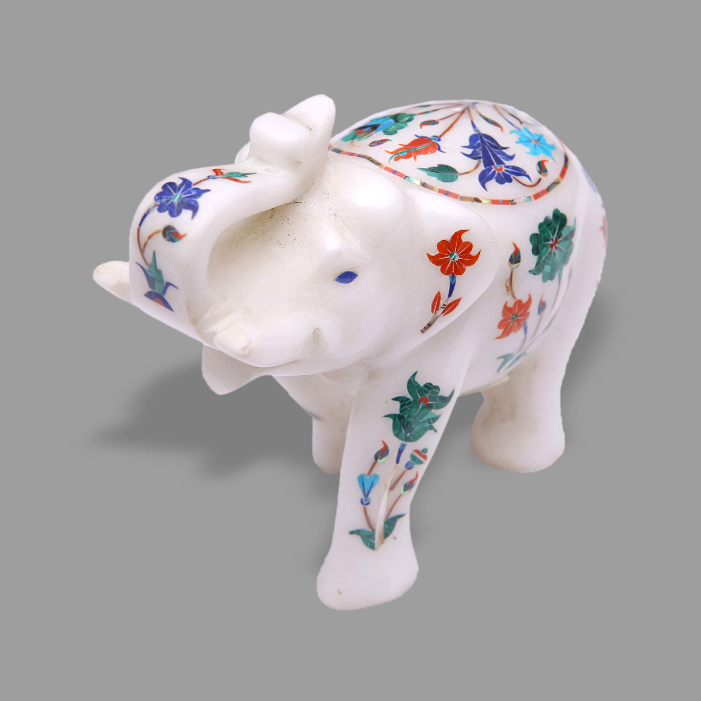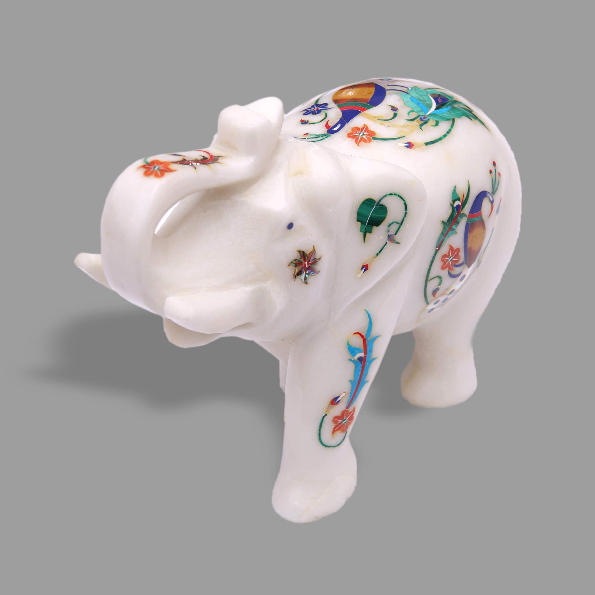 Elephant Sculpture for Sale Marble Inlay Floral Art Gift