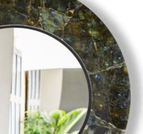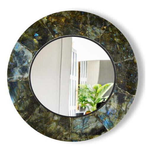 A Labradorite wall mirror is a decorative mirror that incorporate. Labradorite, a unique and iridescent gemstone known for its striking colors and natural beauty. These mirrors are design to showcase the captivating properties of Labradorite while also serving as functional decor pieces.