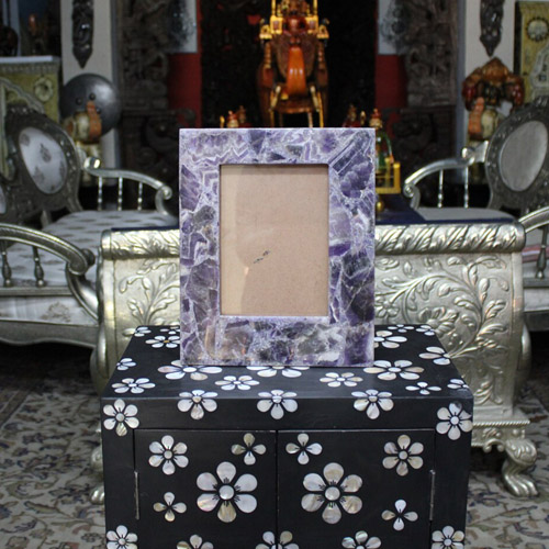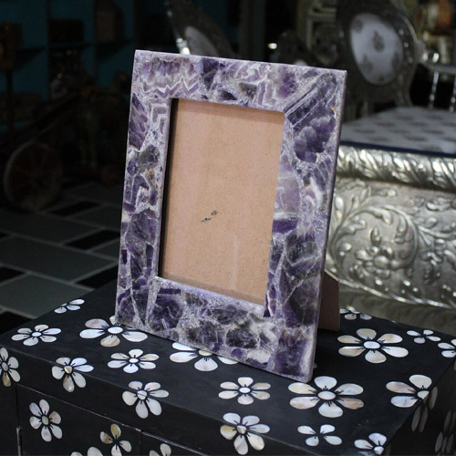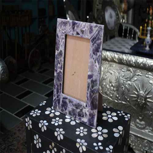 Photo Frame With Natural Amethyst Stones Handmade Work Home Decor Gifts