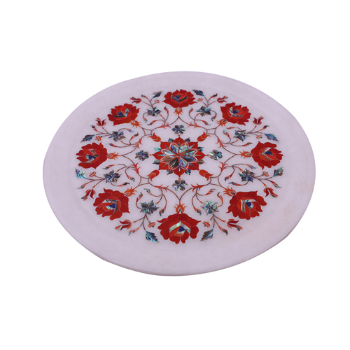 White Marble Red Inlay Art Plates For Handmade and Home Decor Collection