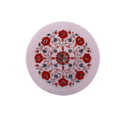- Inlay Technique: Skilled artisans employ the inlay technique, embedding various semi-precious stones like malachite, lapis lazuli, mother-of-pearl, turquoise, and others into the red marble surface to create intricate floral motifs and designs.
