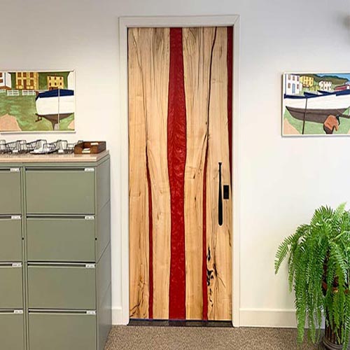 Wood Door featuring Live Edge Walnut Art and Epoxy Resin. It’s a captivating embodiment of mid-century modern aesthetics and artistic expression, transforming your surroundings into an enchanting fusion of natural allure and sophisticated design.